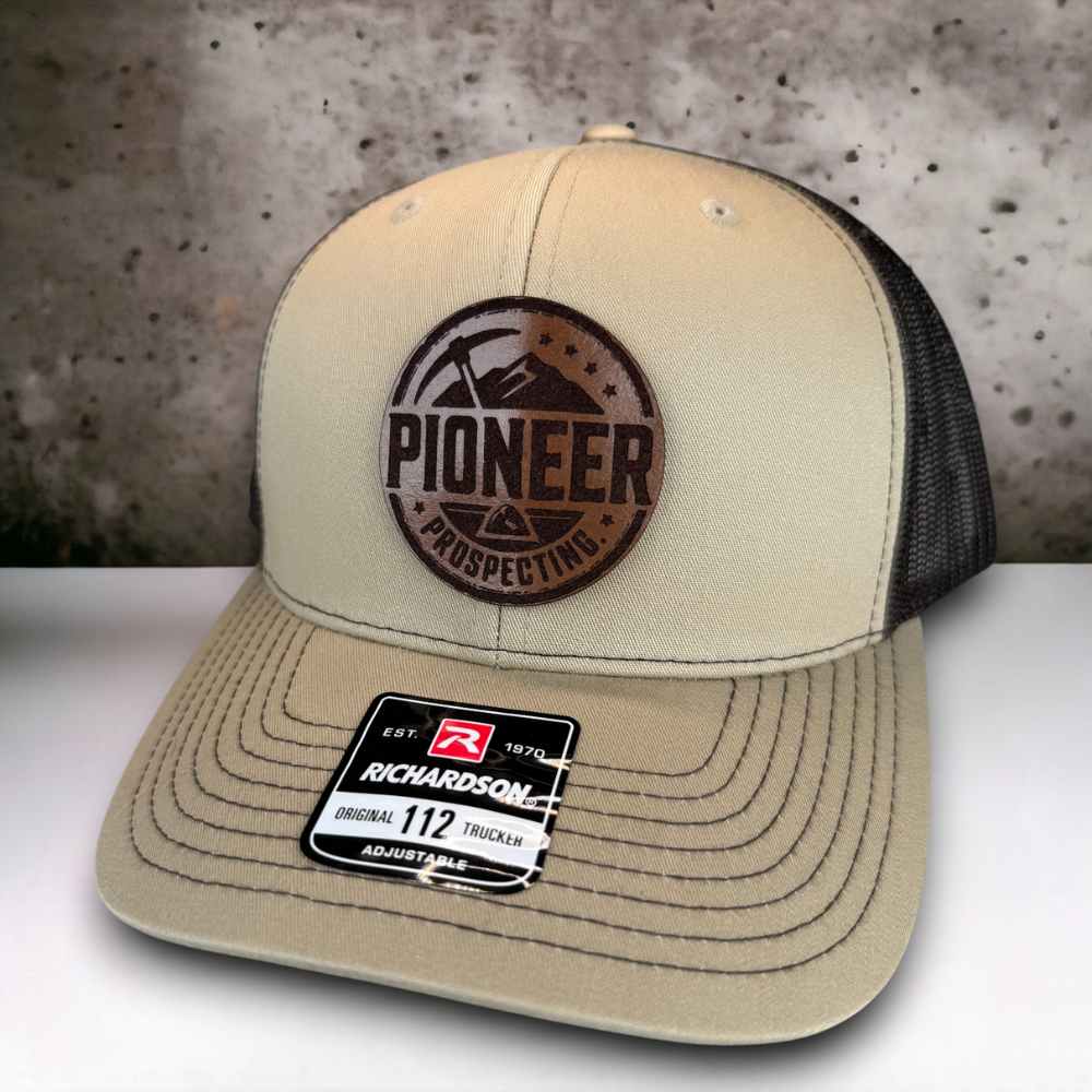 Custom Leather Patch Hats made for PIONEER PROSPECTING.